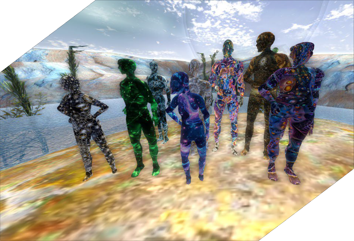 Rather than streaming sound into the online platform, AOM’s custom 'instruments' are created within the Second Life environment, making it possible for each performer in the Orchestra to trigger sounds, visuals, and animations independent from one another and to play together in real time. Combined with otherworldly virtual sets, shifting colours, textures, and light, an AOM performance invites a new kind of listening, with subtle yet powerful mind connections made audible within a rich and wildly varying sonic world.